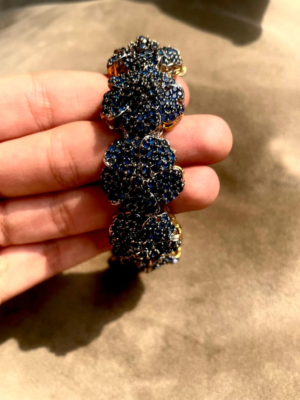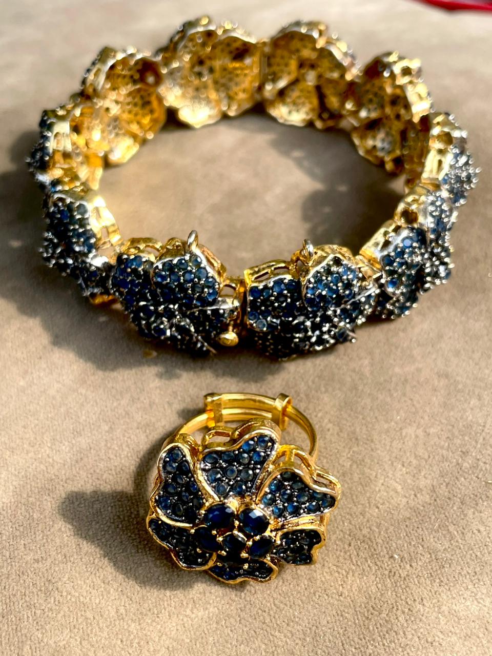 A kara bangle with a single ring attached is a traditional piece of hand jewelry often referred to as a Hathphool (Hand Flower) or Hath Panja when it features a chain connecting the wrist to the finger. In contemporary fashion, it is frequently described as a hand harness or ring bracelet.